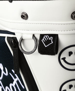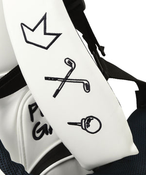 トラッドな着こなしにも合うホワイトとピンクの2カラーからお選びいただける、実用性にも優れ永く愛用できるキャディバッグバッグに仕上がっています。
