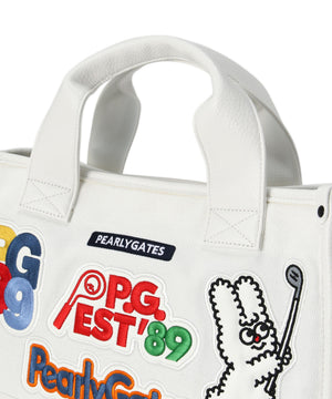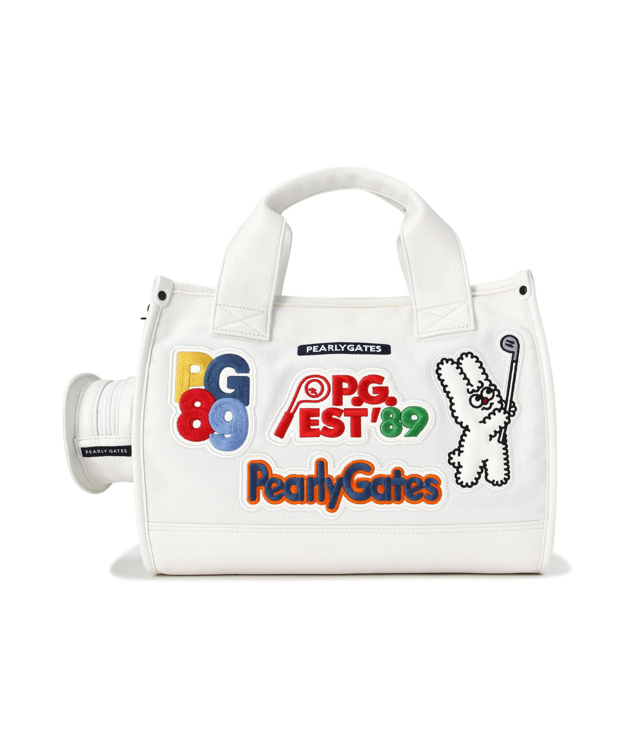ワッペン風のロゴを大胆にレイアウトした、ポーチ付きのロゴワッペンカートバッグ。