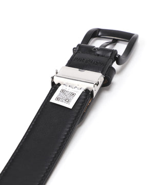 適度な厚みと丸みが特徴的な立体ロゴがコーディネートのアクセントになる、ぷっくりロゴベルト。