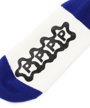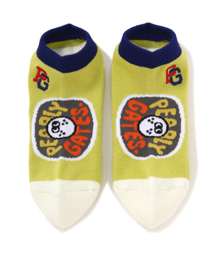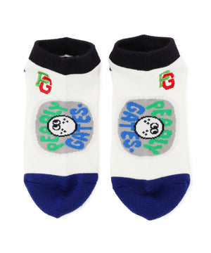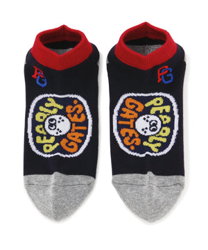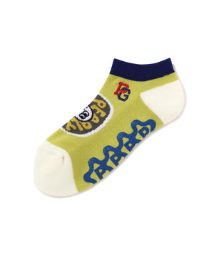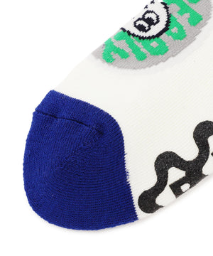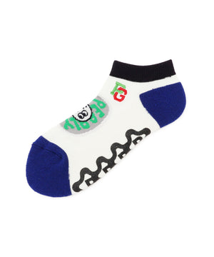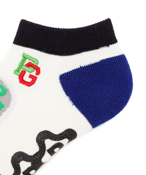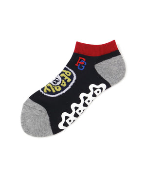 存在感のあるワッペン風のPOPなロゴや新しいキャラクターを大胆にレイアウトした、底ラバーグラフィックアンクルソックス。