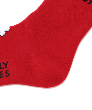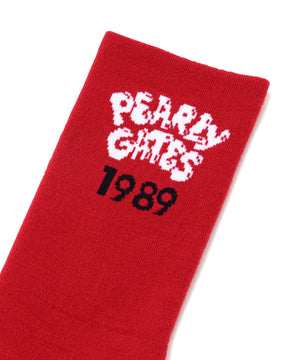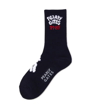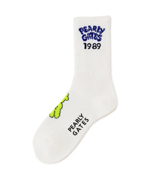ワッペン風のPOPなロゴや新しいキャラクターを大胆にレイアウトした、ぷっくりロゴミドルソックス。