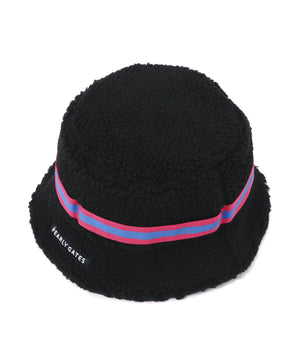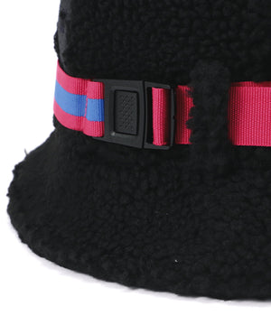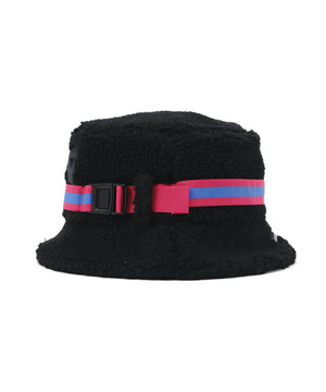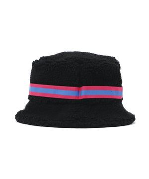 ワンタッチの配色テープがポイントの、フェイクファーハット。