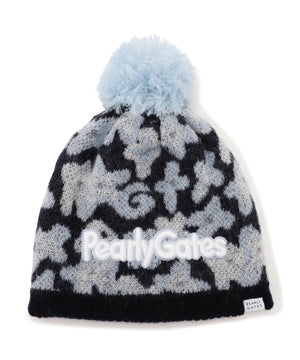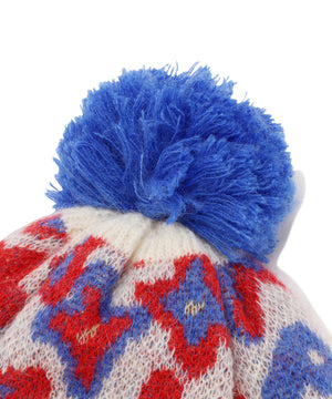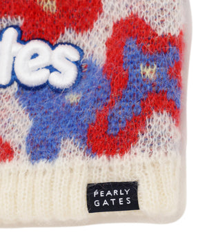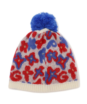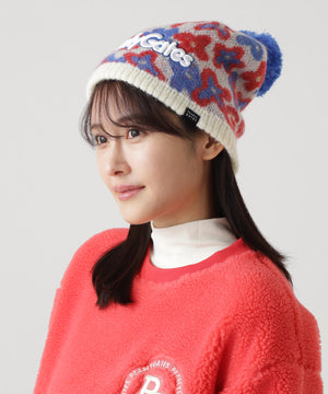 冬気分が上がる絶妙な色調のPOPなフラワーモチーフやロゴを大胆にレイアウトした、POP花柄梵天付きニットワッチ。