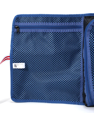 通気性を確保できるメッシュ素材を使った機能的なポケットをつけて、ラウンド後の湿ったシューズを収納しても内部に熱や湿気がこもりにくい作りになっています。