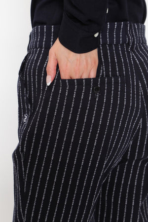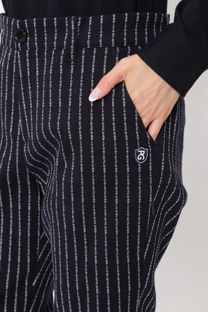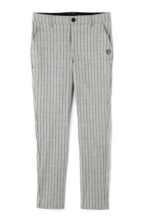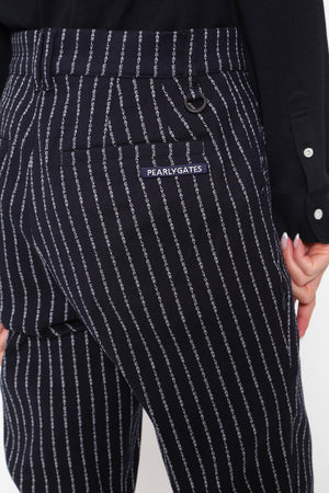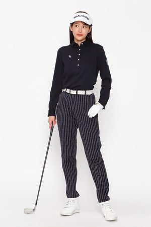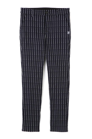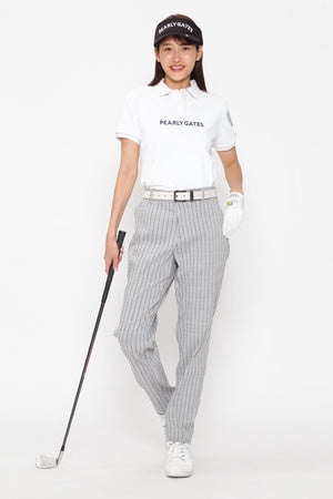 PGエンブレムがさりげないアクセントになった、強ストレッチPGロゴストライプパンツ。PGロゴジャガードで表現した凝ったストライプ柄で作られた、トラッドの定番モチーフであるピンストライプ柄のストレッチパンツです。スポーティーなPGらしく表情に変化をつけた、SPORTY TRADな着こなしをぐっと格上げできる懐かしさと今っぽいさを取り入れたアイテムです。身体の動きを自由にしてくれる強ストレッチ性と、足元をキレイに見せてくれる程よくテーパードさせたスッキリしたシルエットを採用。この秋、パーリーゲイツが大プッシュするトラッドな着こなしに、このアイテムを是非エントリーしてみて下さい。