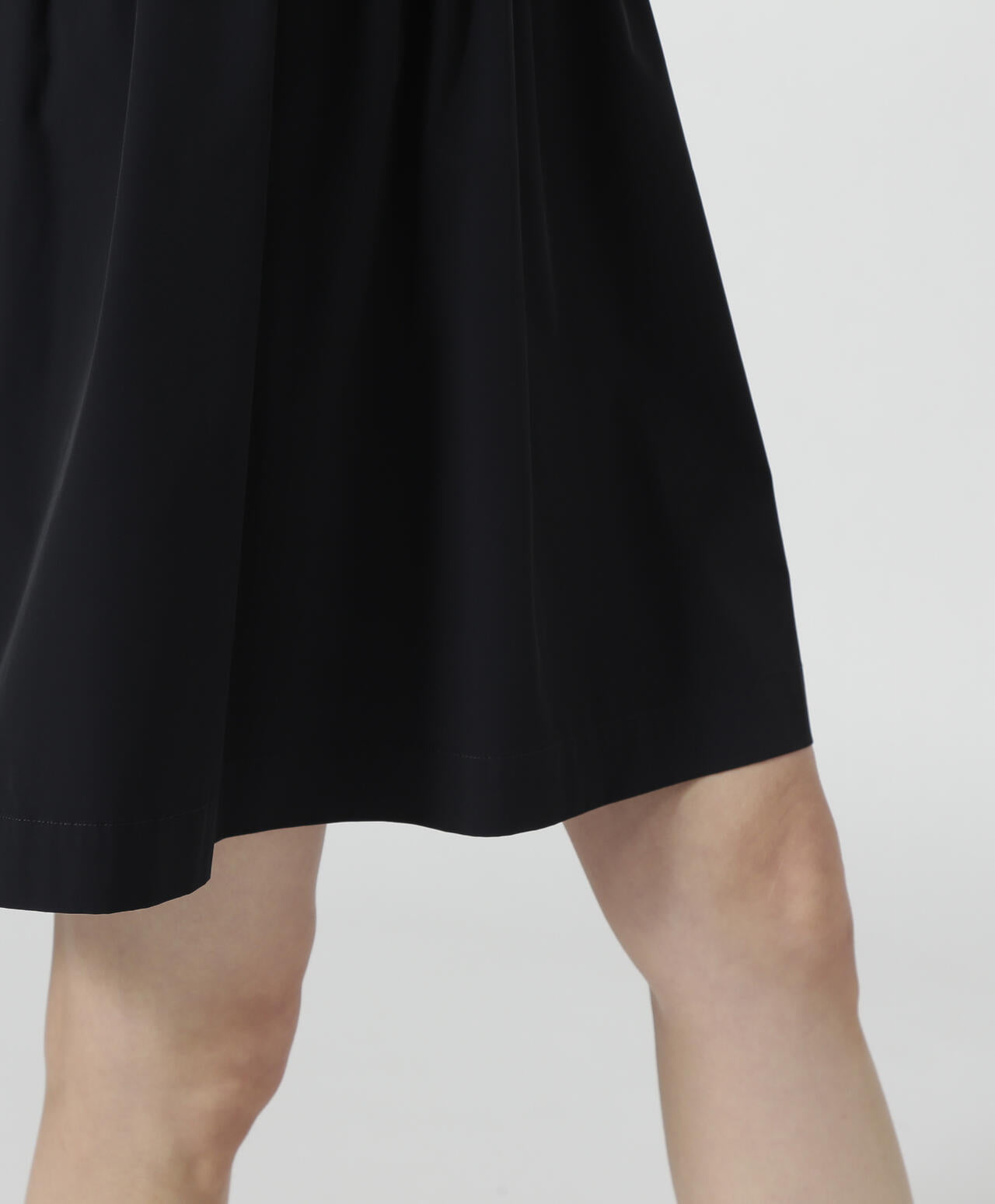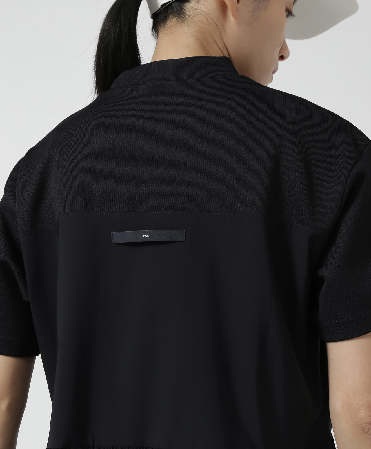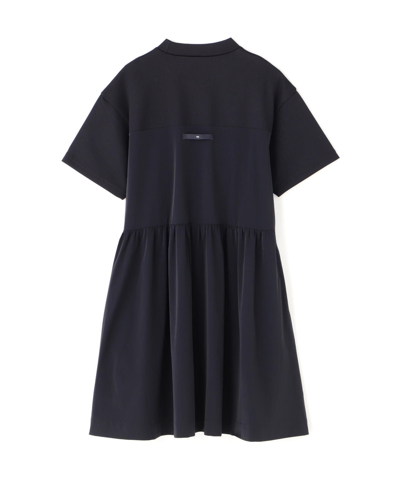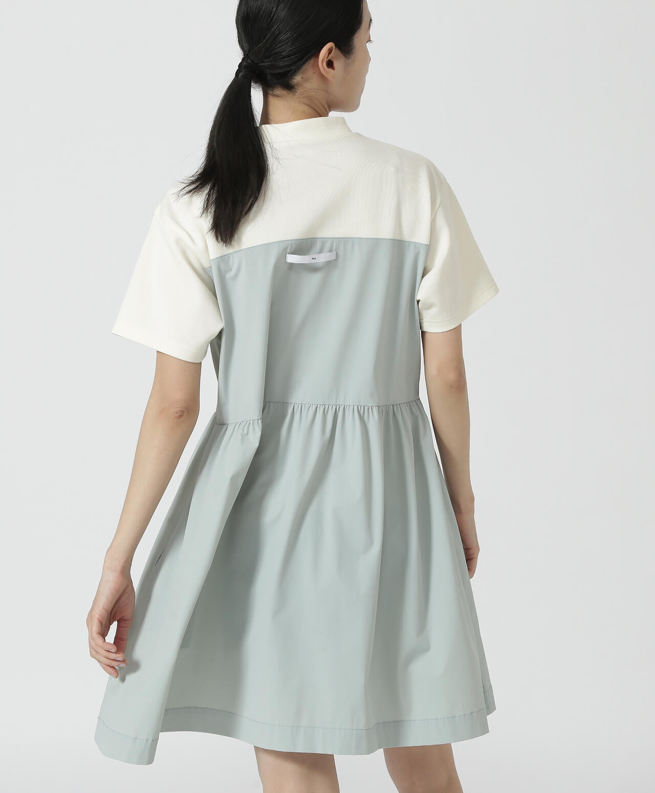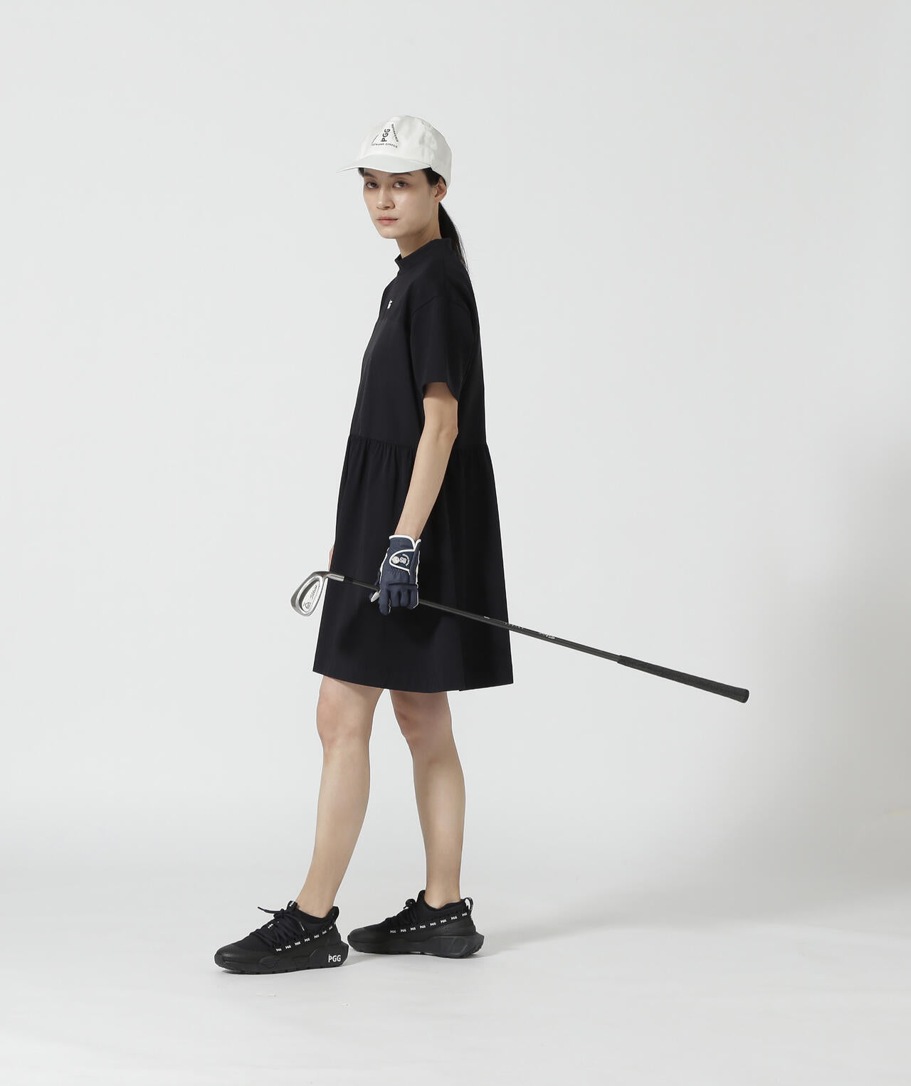 ウエストのギャザーの切替しでスタイルアップを叶えてくれる、直営店舗&公式オンライン限定 Nyストレッチラチネコンビ半袖モックネックワンピース。タフタ側にはHEIQのSmartTemp(調温性)加工を施し、気温が高い時は積極的に汗を蒸散し気化熱で体温の上昇を防ぎ、気温が低い時は体の水分の蒸散を抑制し寒い環境でも体温を保つようサポートされています。汗をかきやすい部位には通気性と伸縮性に富んだニットの別布を部分使用して、デザイン性にも配慮した魅力的なディテールで快適性をアップ。ゴルフはもちろんデイリーユースでも一枚でおしゃれに涼しく着用できる、新しいシーズンにオススメの一着です。