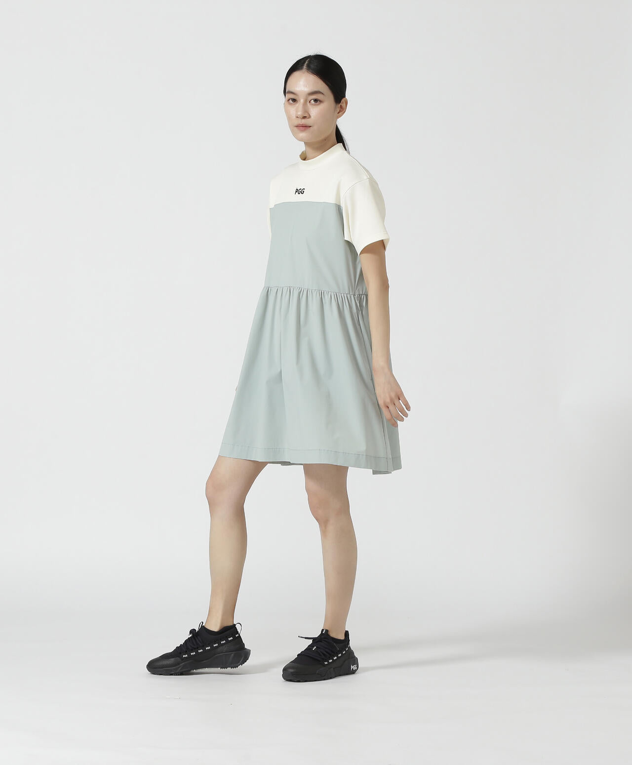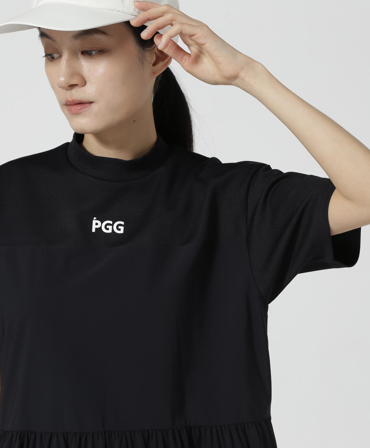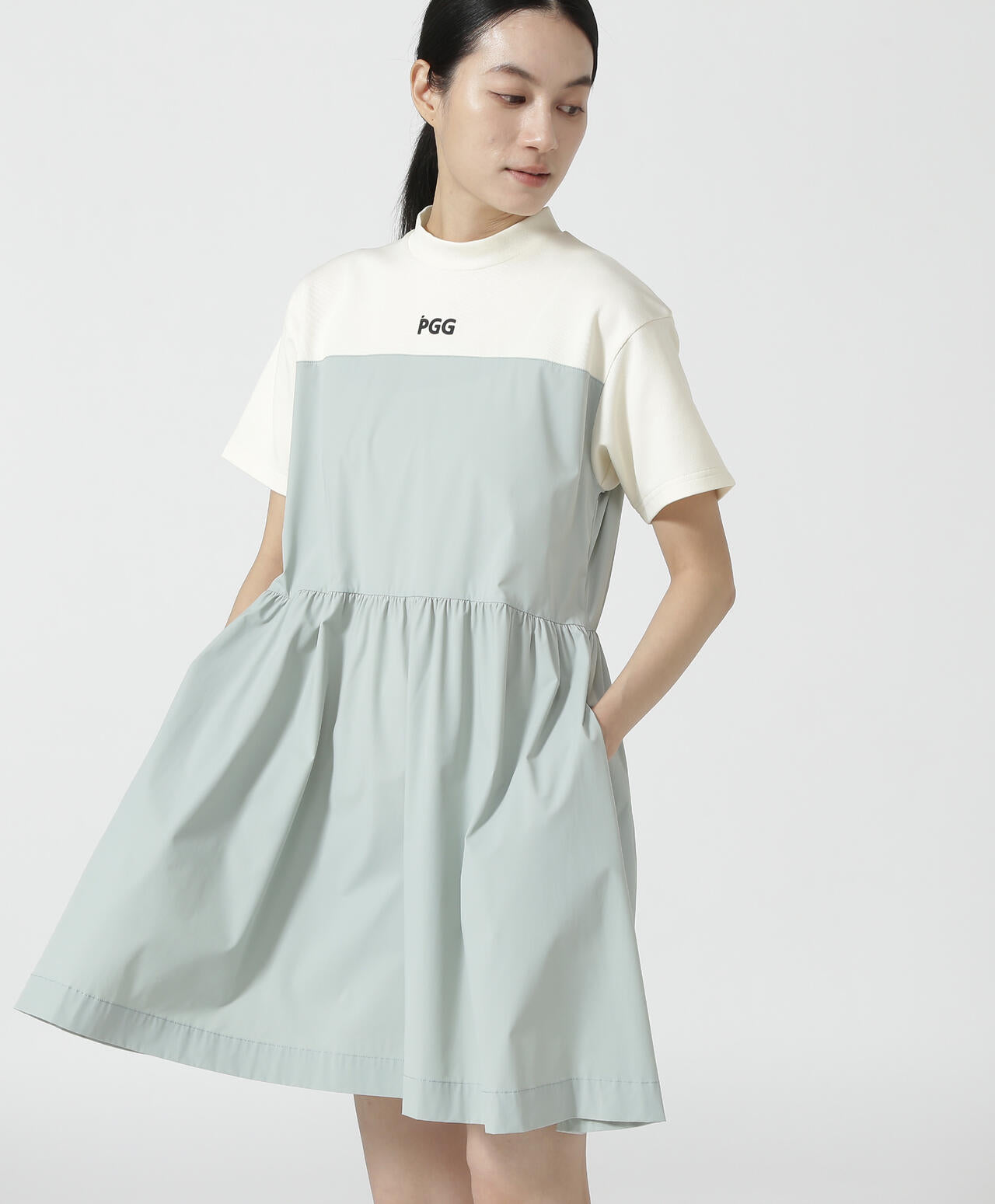 【PGG】【直営店舗&公式オンライン限定】Nyストレッチラチネコンビ 半袖モックネックワンピース (LADIES)