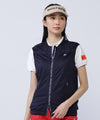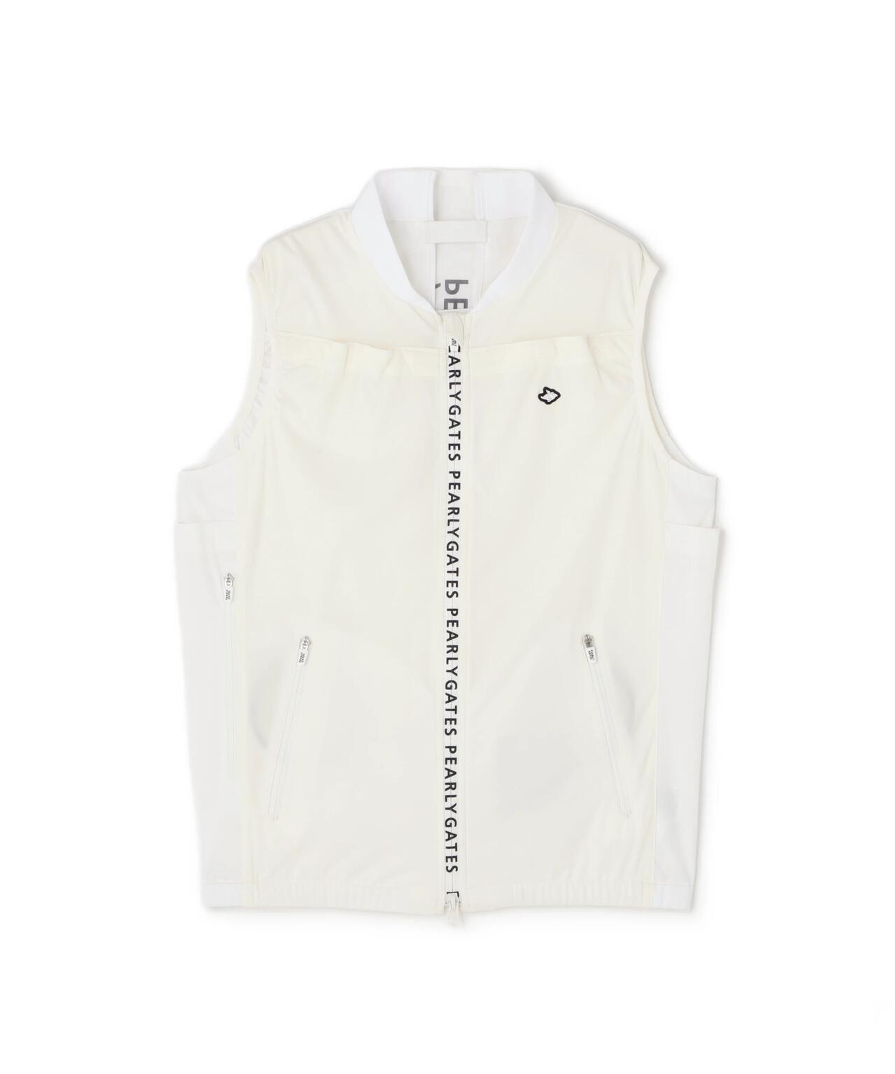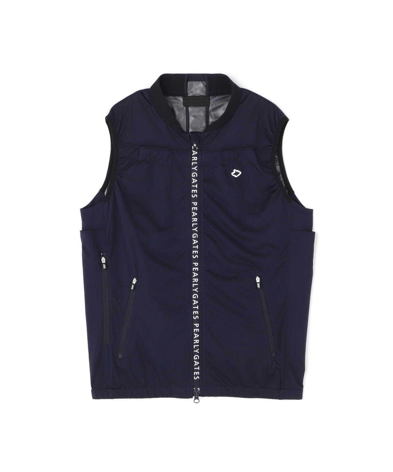 フライングラビットやタテに配したPGロゴがシンプルシックな装いの中に際立つ、カチオンマルチストレッチニットファンフルジップベスト。