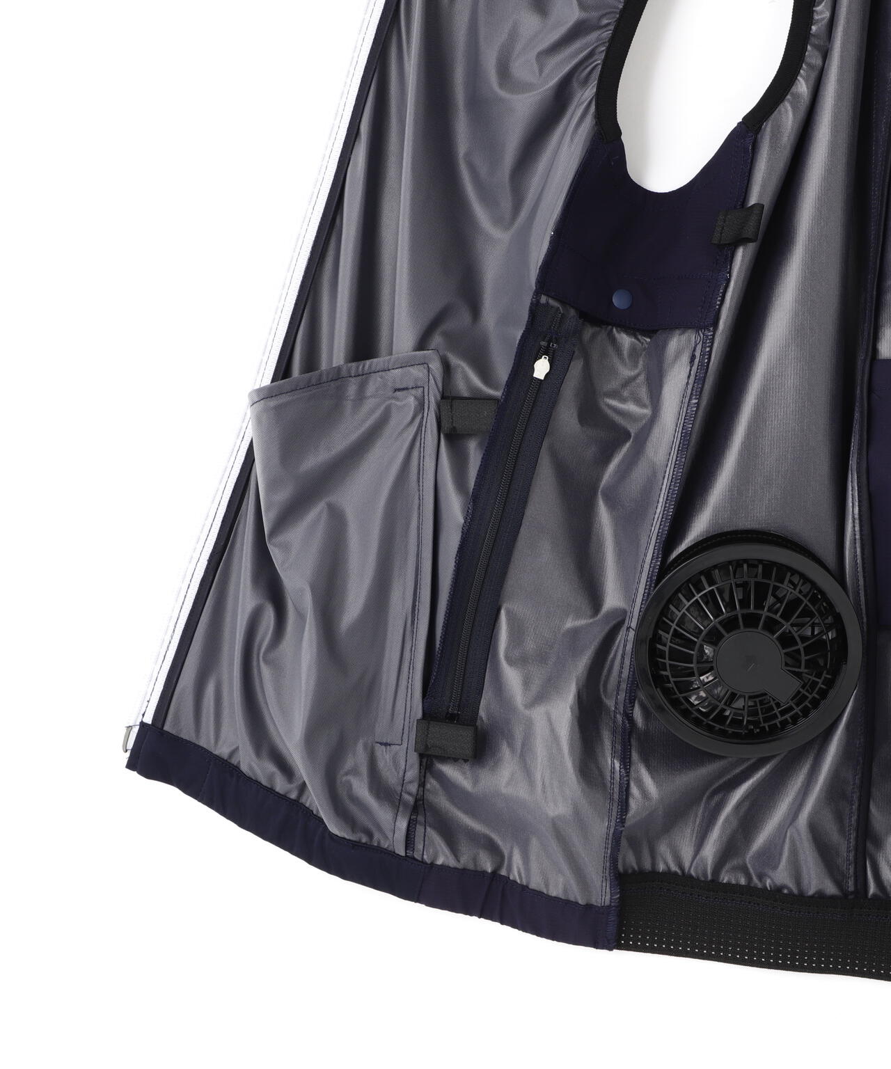 しっかり身体をクールダウンできる風を通すエアダクト、風量調整可能なリモコン、背面のファンなど、パターンを緻密に調整しながらファンから生み出された風による冷涼効果を高めることが可能な豊富な機能を随所に搭載。