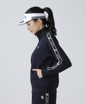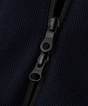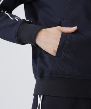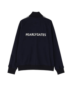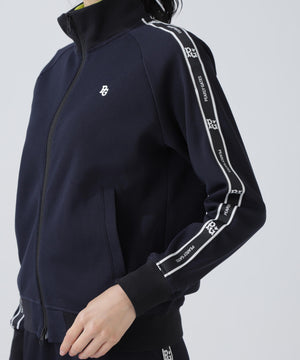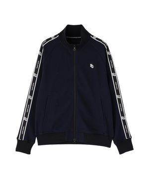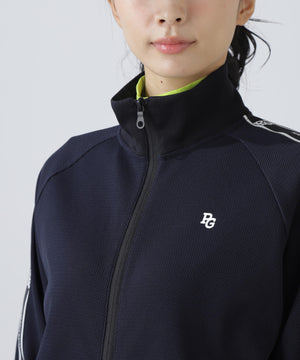 袖のロゴテープでスポーティー感をプラスさせた、Peストレッチメッシュトラックジャケット。