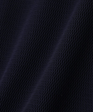 風の通り抜けがよく熱を逃がしムレにくいメッシュ構造の、軽やかな風合いのポリエステル素材を使用。