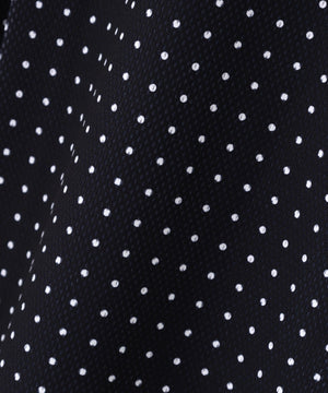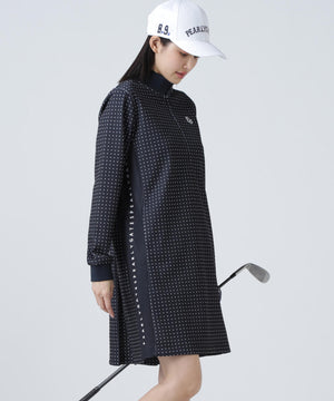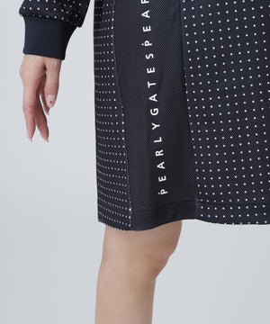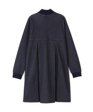 軽やかなリズム感の楽しさを表現した、ミニドット柄メッシュダンボールハーフジップアップワンピース。