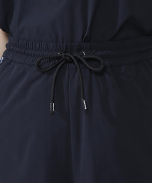 楽な履き心地と快適性を保持する、ドロスト紐を通したゴム仕様のウエストベルトを採用。