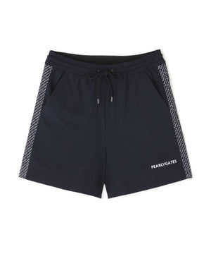 バイヤスロゴ柄のサイドの切替しがコーディネートのポイントになる、ナイロンアクティブストレッチショートパンツ。
