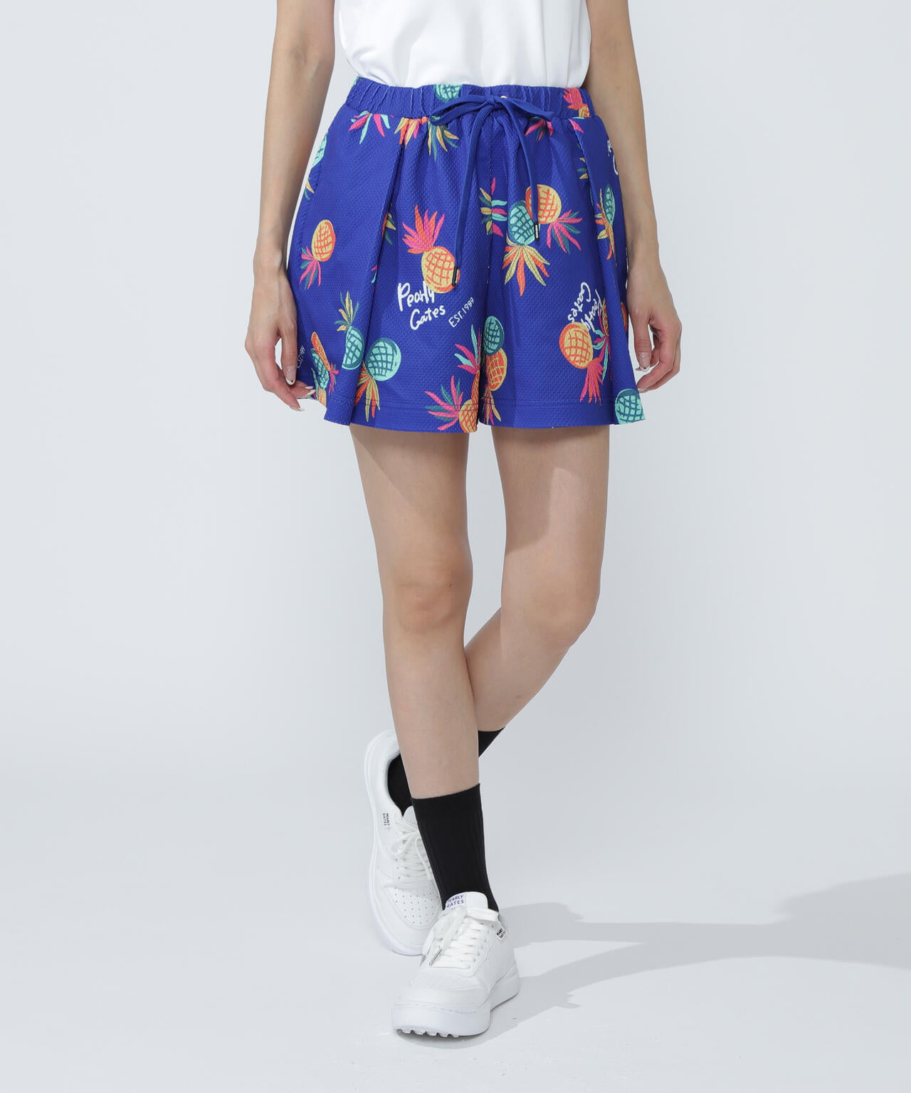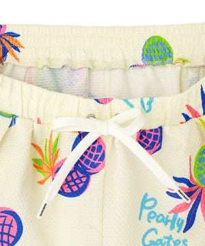 シーズンムードが高まる総柄プリントが目を引く、パイナップルアート柄 46G75d PBTドビーショートパンツ。