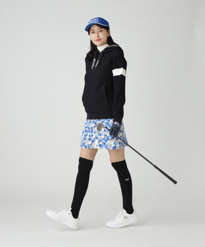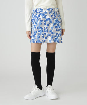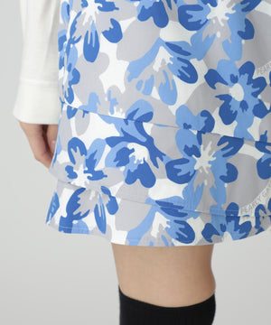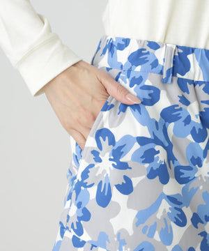 Peストレッチドビー中綿スカート <ラフ花ロゴ小柄>