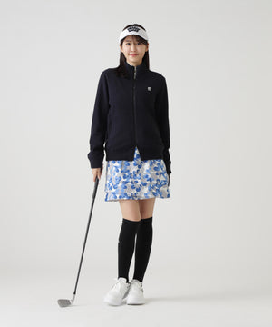 軽くソフトな風合いで温かく快適なはき心地を体感できる、ラフ花ロゴ小柄Peストレッチドビー中綿スカート。