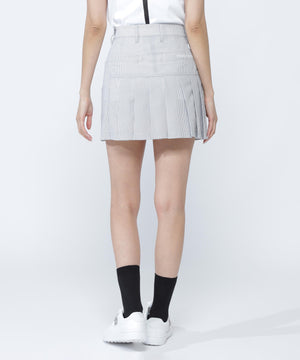 プリーツを施したアシンメトリーなデザインが特徴の、EVALETサッカースカート。