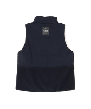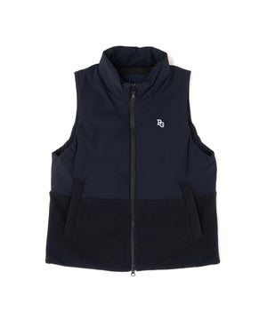 軽くて暖かいフリース素材を部分使用して保温性を高めた、合繊×フリース片面起毛 中綿フルジップアップベスト。