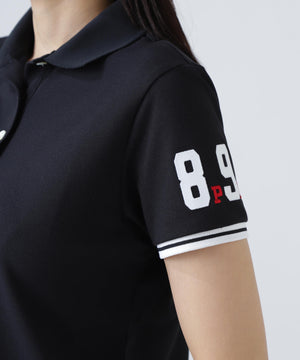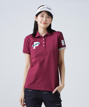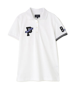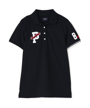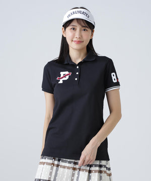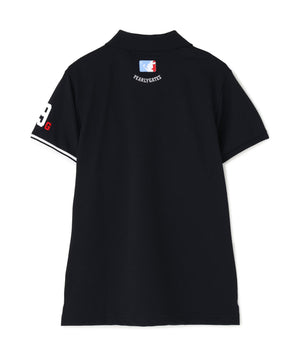 アシンメトリーに入れたロゴやラインでスポーツテイストに表現した、T/C6口鹿の子半袖ポロシャツ。