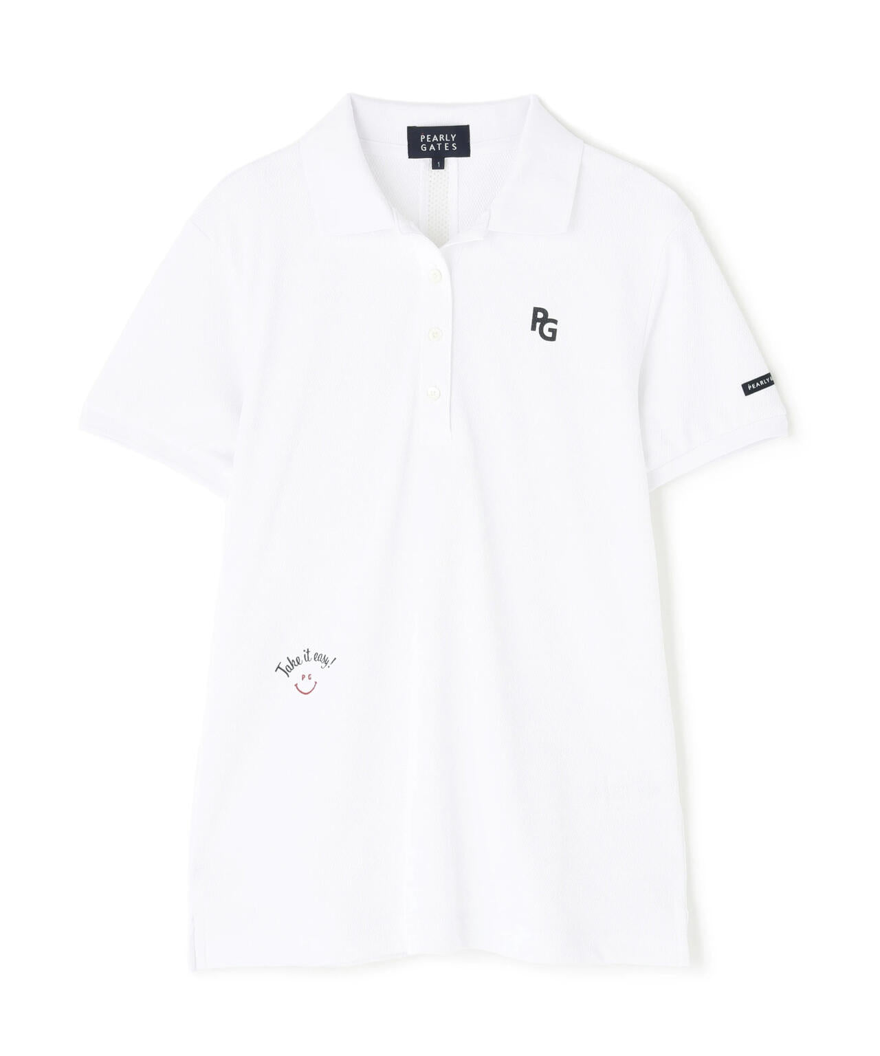 風通しがよくサラッとした肌触りの素材を使用した、ポップコーンカノコ×メッシュ半袖ポロシャツ。