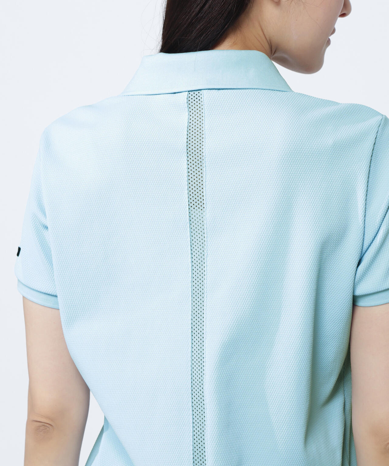 立体感のある凹凸が特徴のポップコーン編みとカノコ編みを組み合わせた、蒸し暑い夏のゴルフにぴったりなポロシャツ。