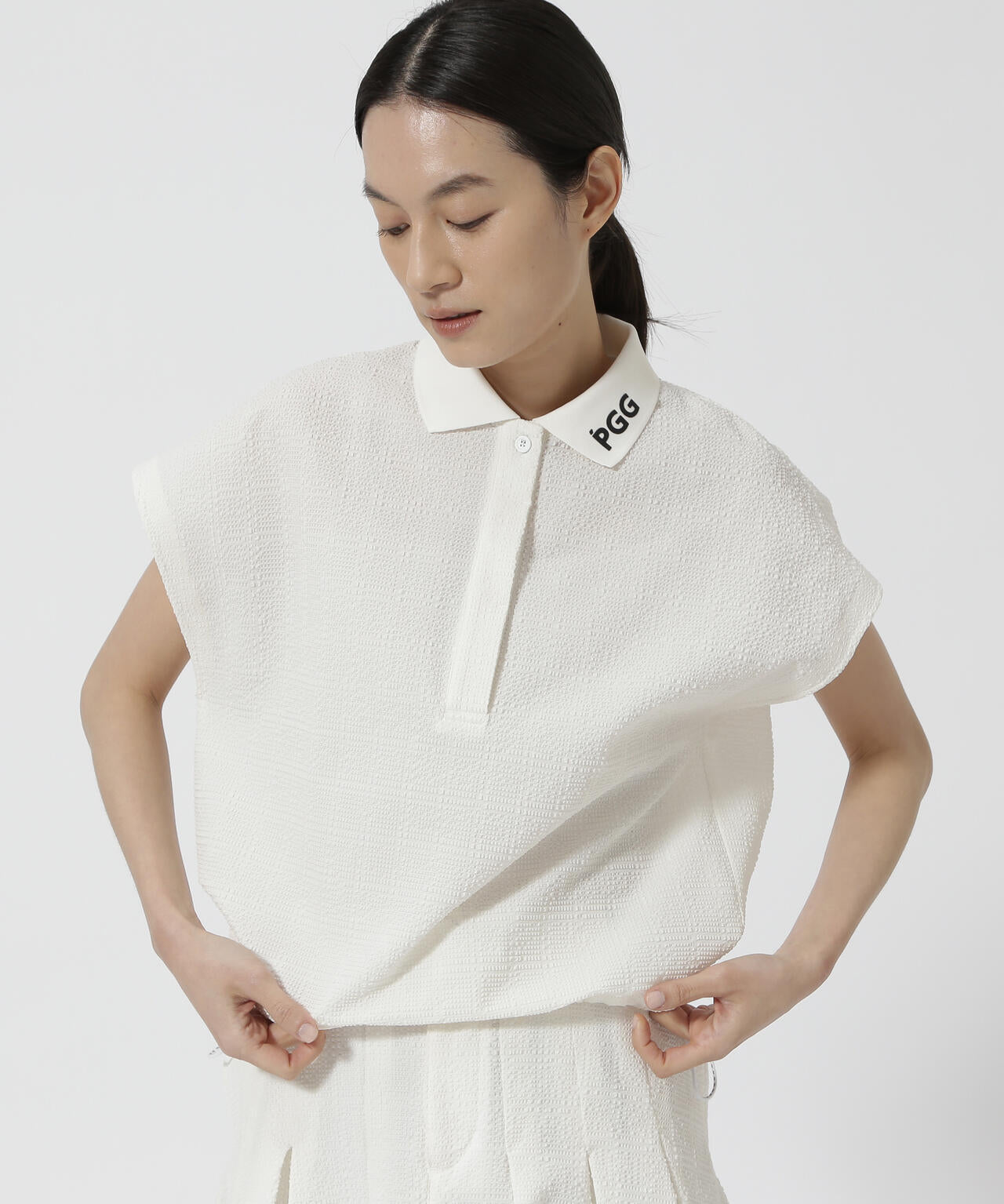 【PGG】【直営店舗&公式オンライン限定】Peストレッチサッカーフレンチスリーブポロシャツ (LADIES)