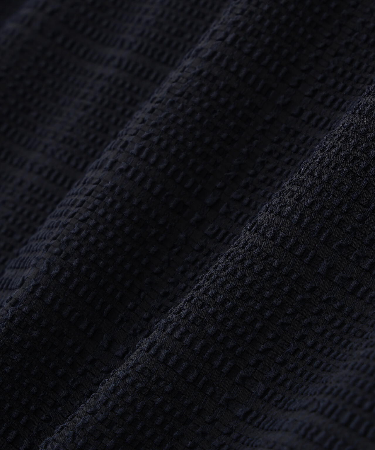 表面の繊細な凹凸やさらっとドライな感触で肌離れのよさを体感できる、直営店舗&公式オンライン限定 Peストレッチサッカーフレンチスリーブポロシャツ。