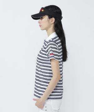 特殊なメッシュ生地により風通しが良く涼しさを感じられる、ロゴボーダー柄KAZEメッシュ半袖ポロシャツ。