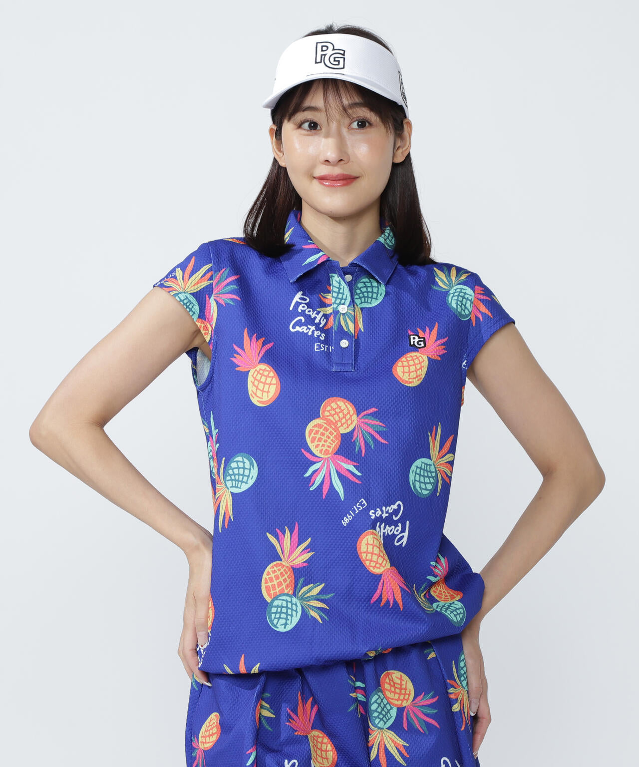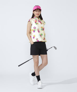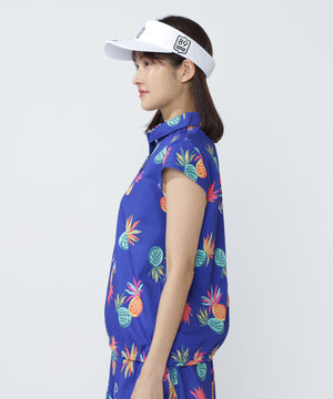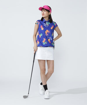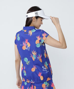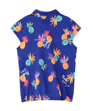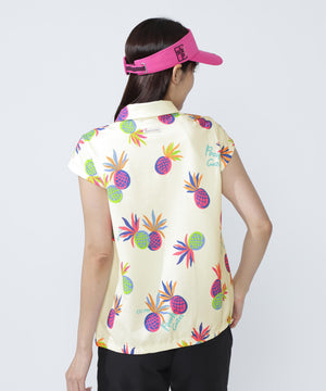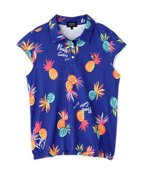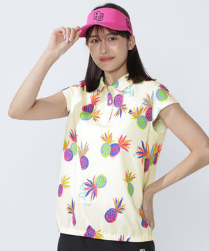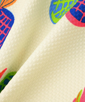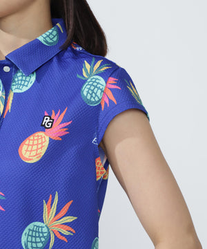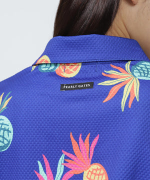 シーズンムードが高まる総柄プリントが目を引く、パイナップルアート柄 46G75d PBTドビーポロシャツ。