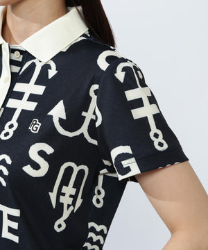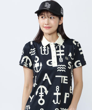 梨地半袖ポロシャツ <アンカーロゴ総柄>