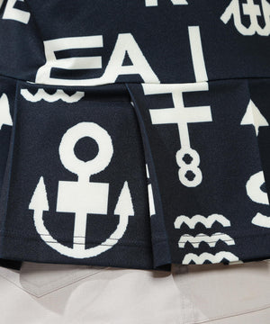マリンモチーフとブラックのシックな表情とが溶け合った、アンカーロゴ柄梨地半袖ポロシャツ。