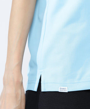 PEARLY GATES人気キャラークターのフライングラビットを袖に入れた、ワッフルメッシュジャージ半袖ポロシャツ。