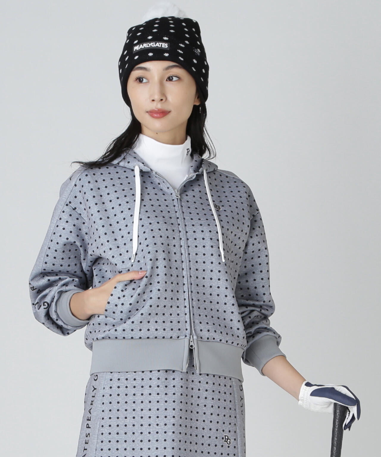 軽やかなリズム感の楽しさを表現した、ミニドット柄ダブルフェイスフルジップフーディ。