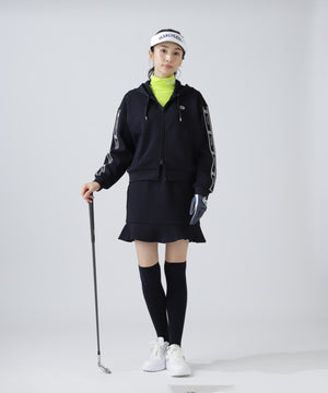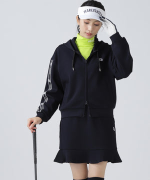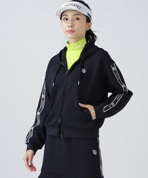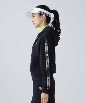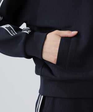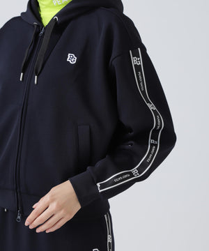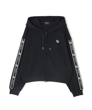 シルエットがキレイに見えて動きやすい、袖のロゴテープがポイントになったフーディアイテムです。
