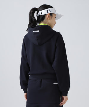 膨らみを感じるスポンディッシュな風合いとしなやかなハリ感が特徴の、Peスパンダンボールメッシュフルジップフーディ。