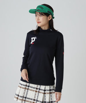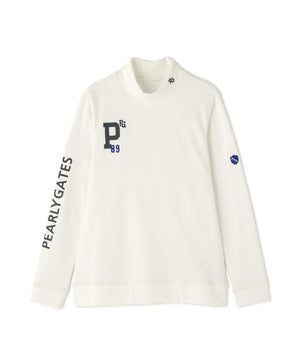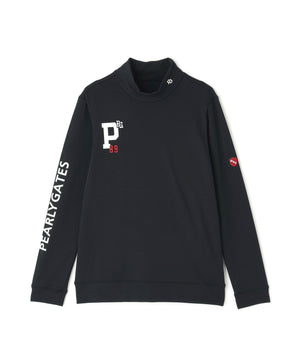スポーツ気分あふれるロゴがコーディネートのポイントになる、スーパーファインウールフリース長袖ハイネックカットソー。