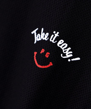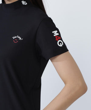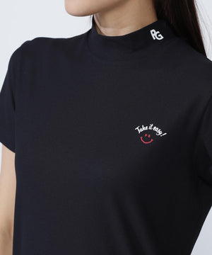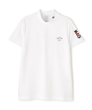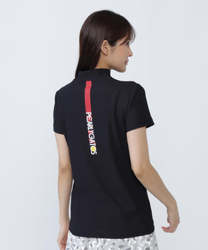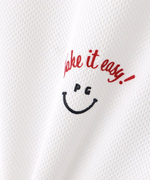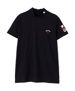 清涼感のある生地にPGのさまざまなロゴモチーフを入れてアクセントを効かせた、ハニカムカノコ半袖モックネックカットソー。