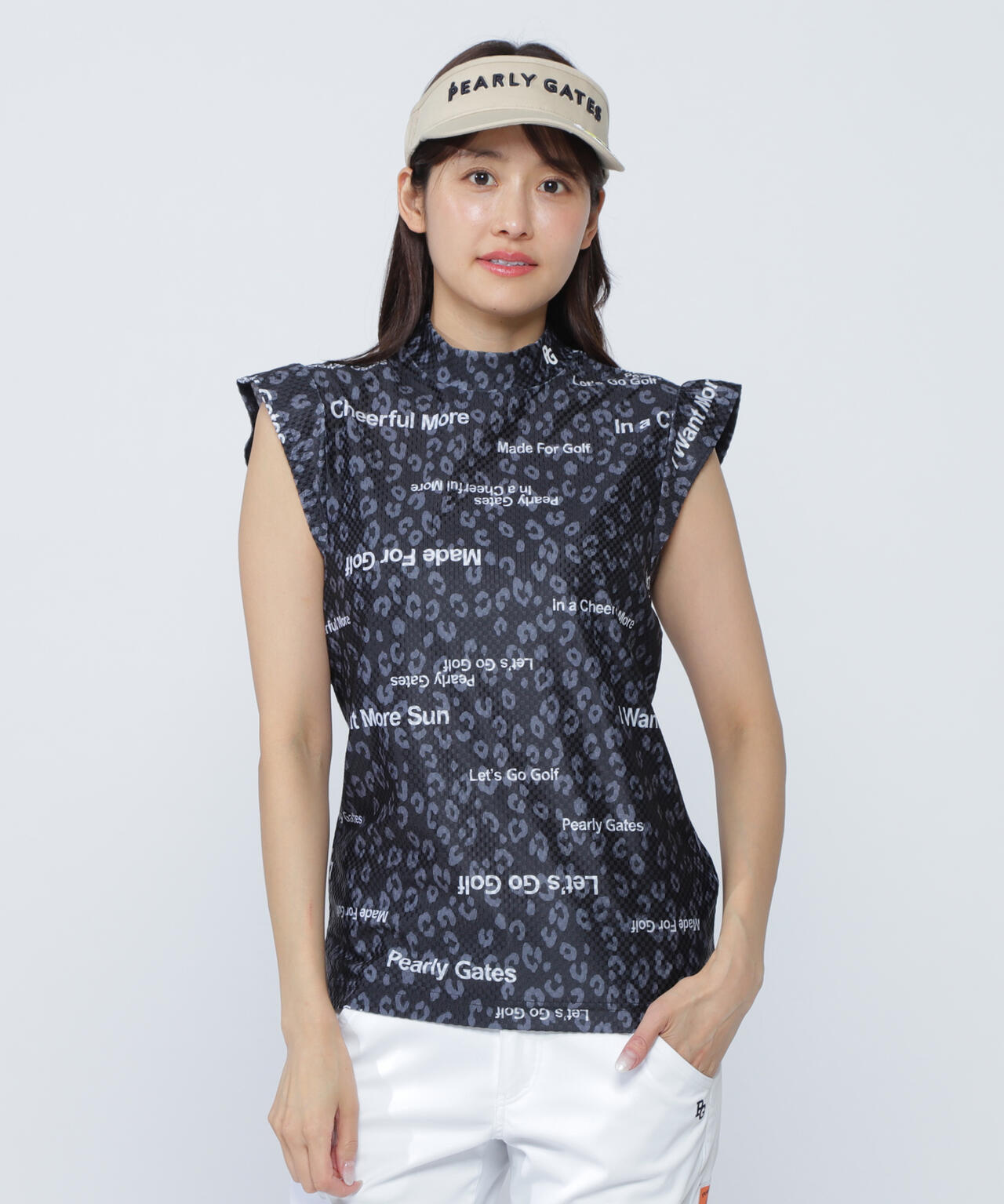 パッと目を引くスパイス効果を発揮する、ヒョウ柄トリコット4WAYブロックジャガードフリル袖モックネックカットソー。