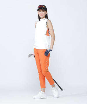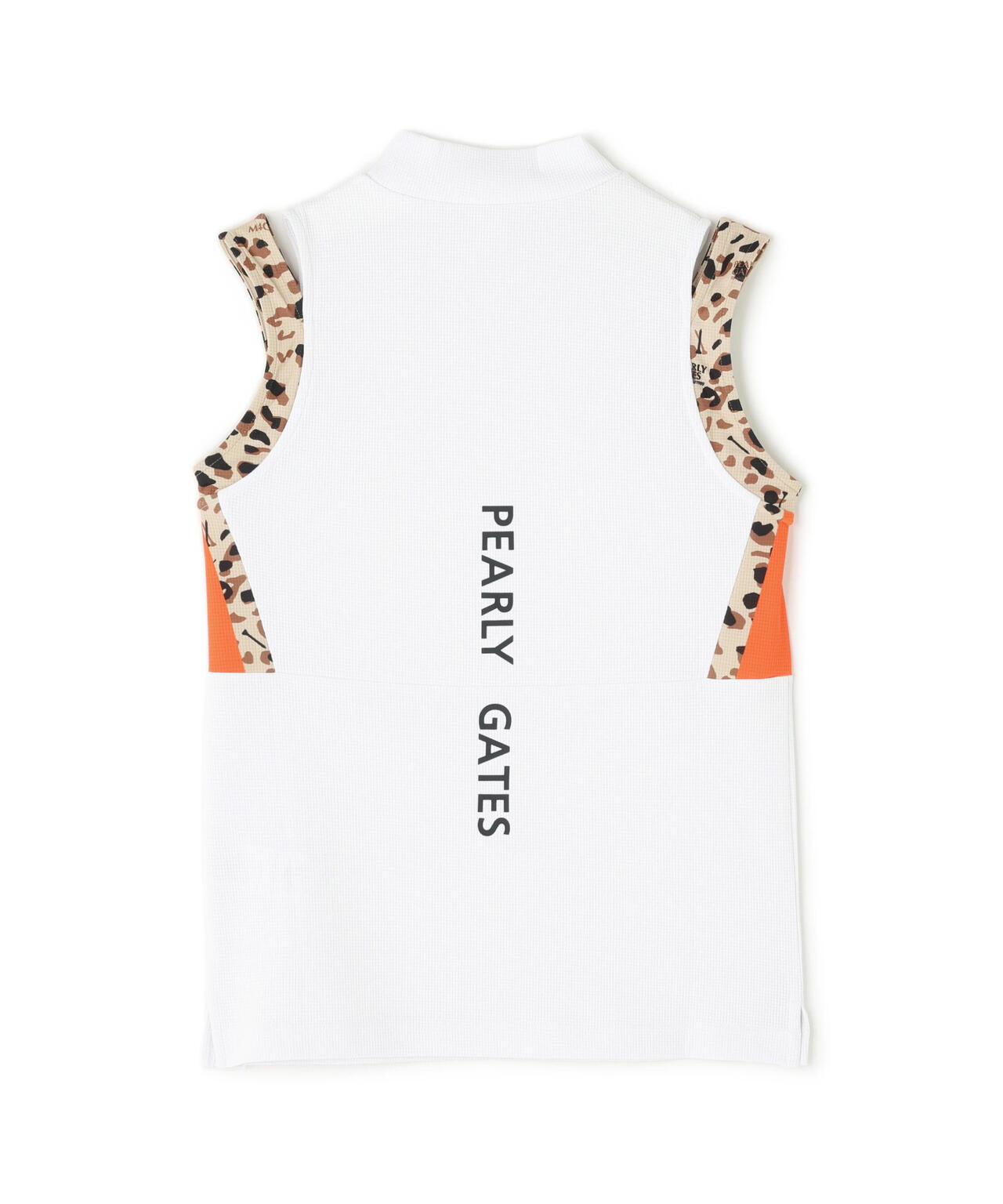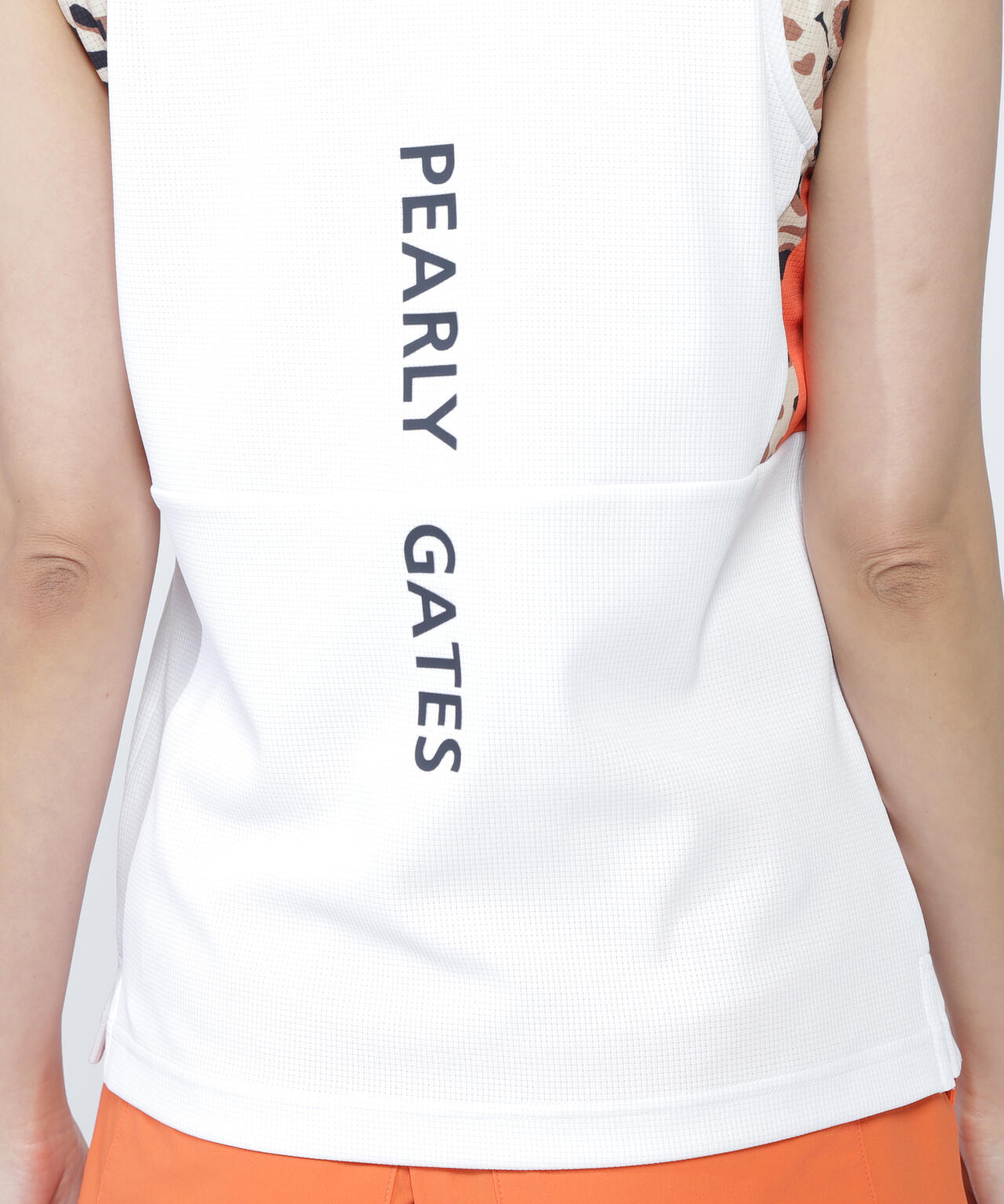 コーディネートにパッと目を引くスパイス効果を発揮する、アクアツイストドットメッシュスリーブレスモックネックカットソー。