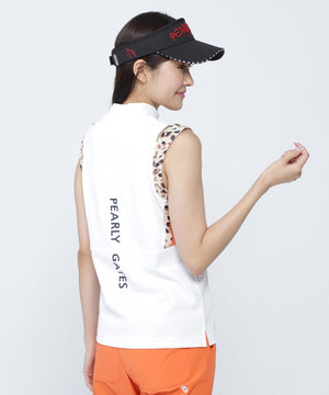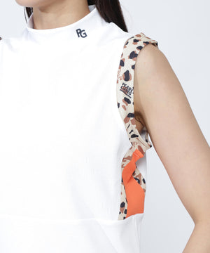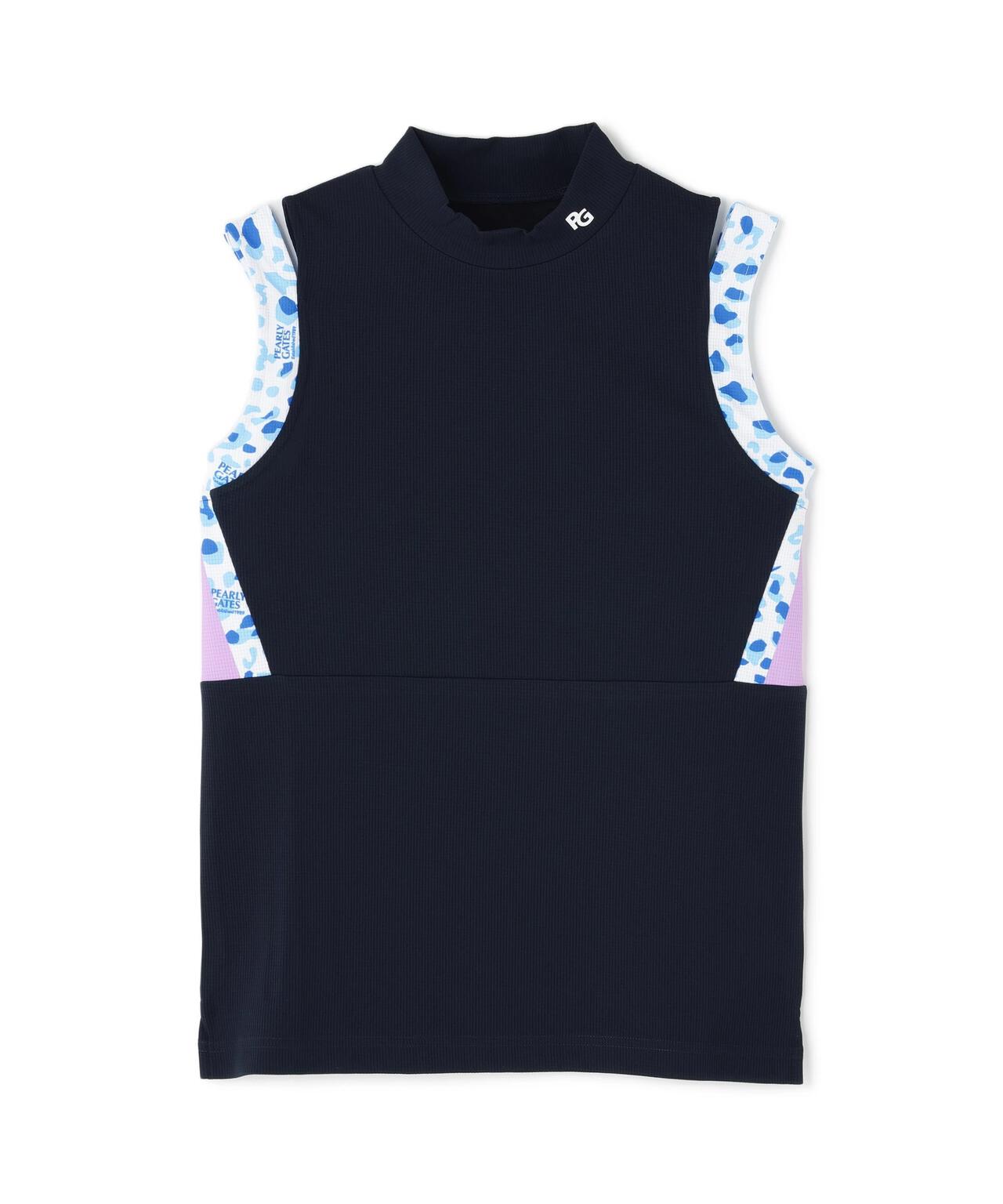アクアツイストドットメッシュスリーブレスモックネックカットソー