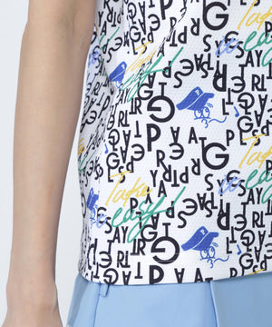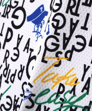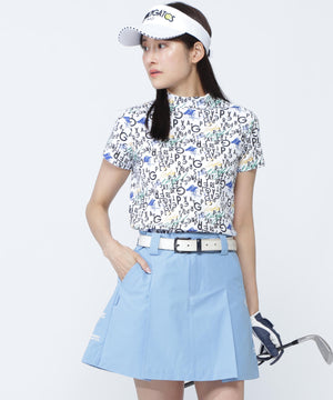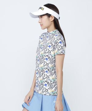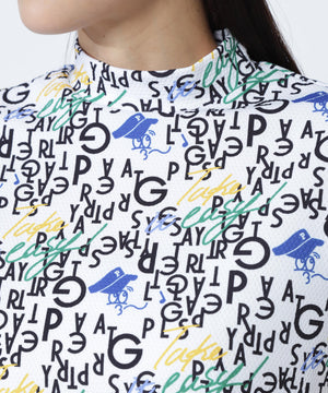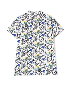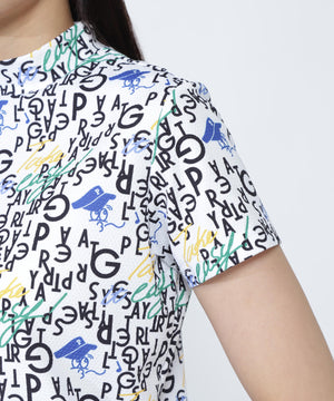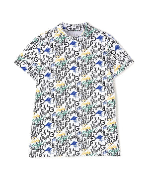 BALLくんと変化をつけたPGロゴを組み合わせて遊び心たっぷりに表現した、BALLくんロゴ総柄プリント半袖モックネックカットソー。