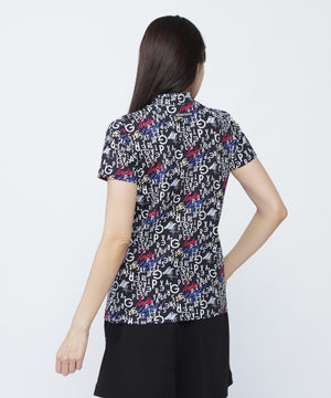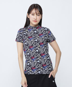 BALLくんロゴ総柄プリント半袖モックネックカットソー