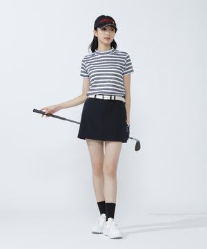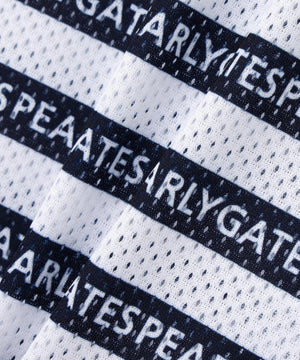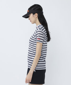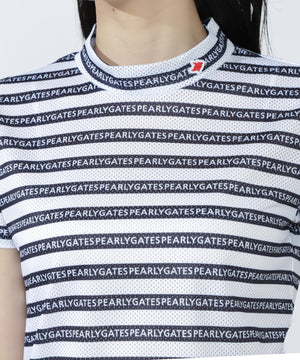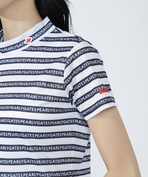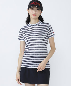 KAZEメッシュ半袖モックネックカットソー <ロゴボーダー柄>