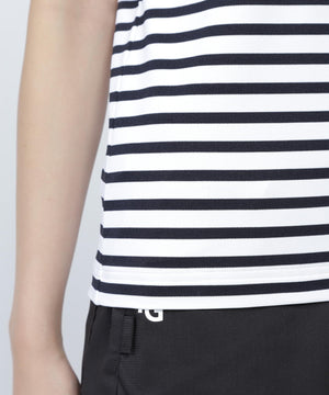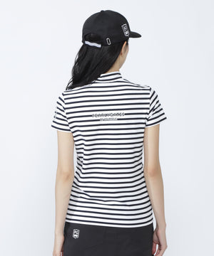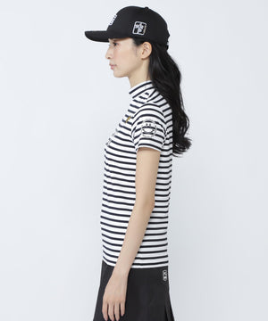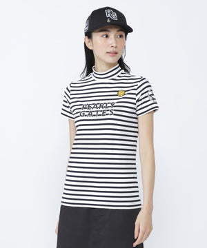 フロントロゴでスポーティーなインパクトを与えた、ボーダー柄 PG is PG ベアカノコ半袖ハイネックカットソー。