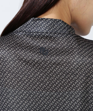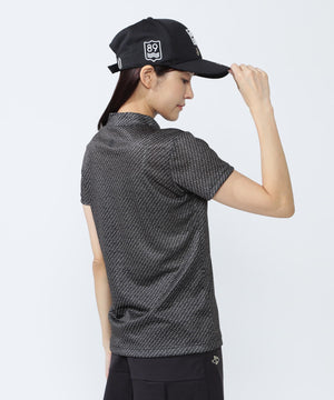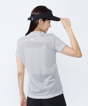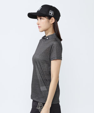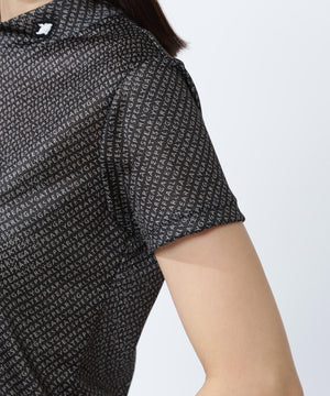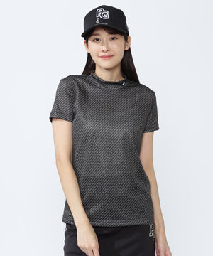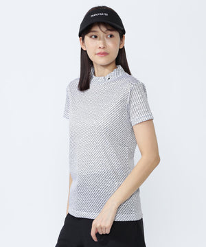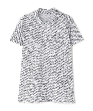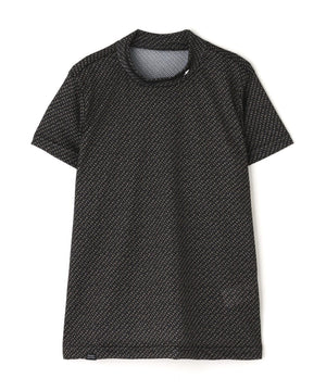 KAZEメッシュ半袖ハイネックカットソー <ロゴバイヤスボーダー柄>