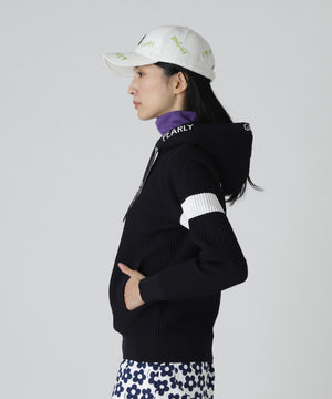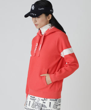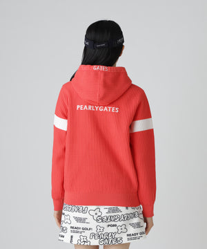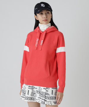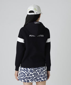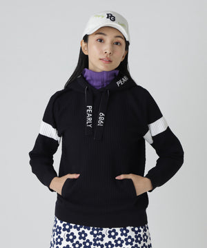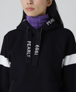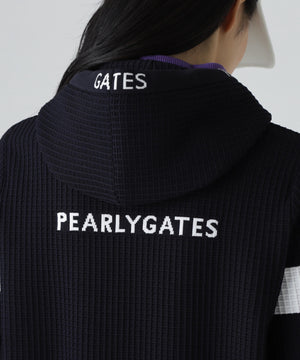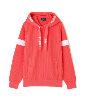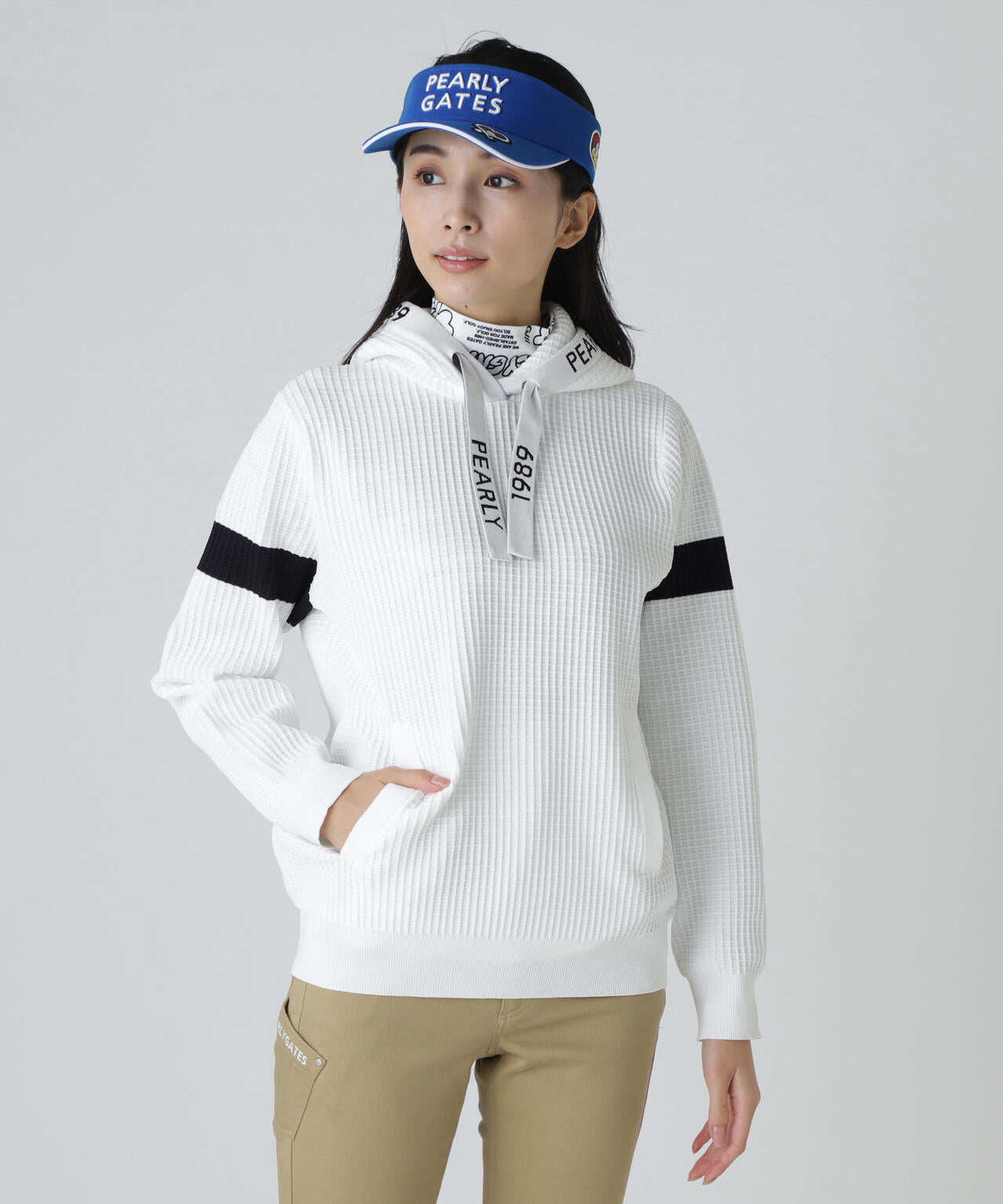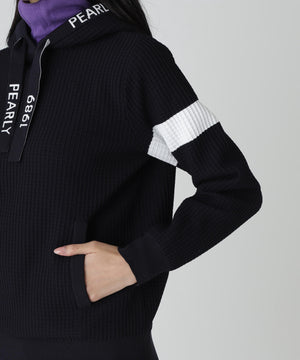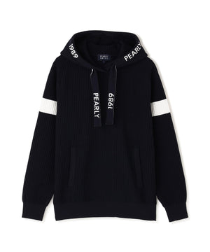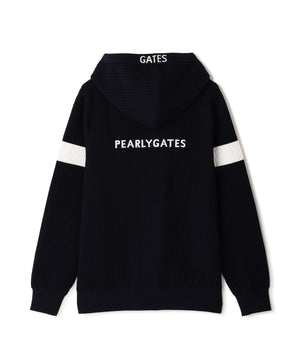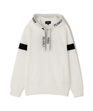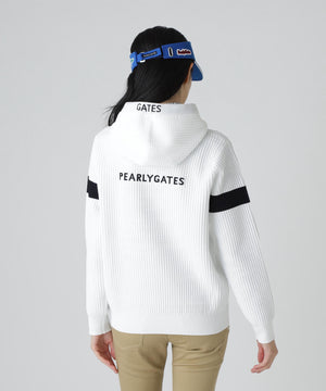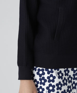格子状の凸凹がある繊細な編地にPGロゴを入れてスポーティーを表現した、12Gダブルジャガードフーディニットプルオーバー。