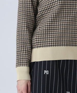 14Gダブルジャガードクルーネックニットプルオーバー <ガンクラブチェック柄>