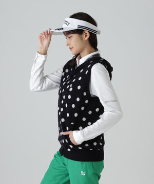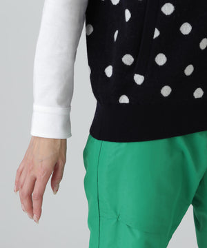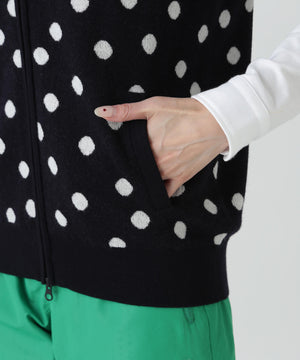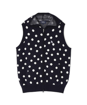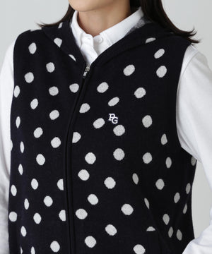 14Gダブルジャガードカシミヤ混フルジップニットフーディベスト <ランダムドット柄>
