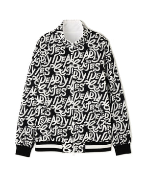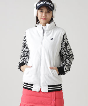 柔らかさと暖かさを感じる冬ならではのPOPなフォントのロゴを総柄で表現した、冬ゴルフのホリデイ気分を一気に盛り上げてくれる高機能アウターです。